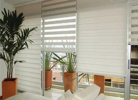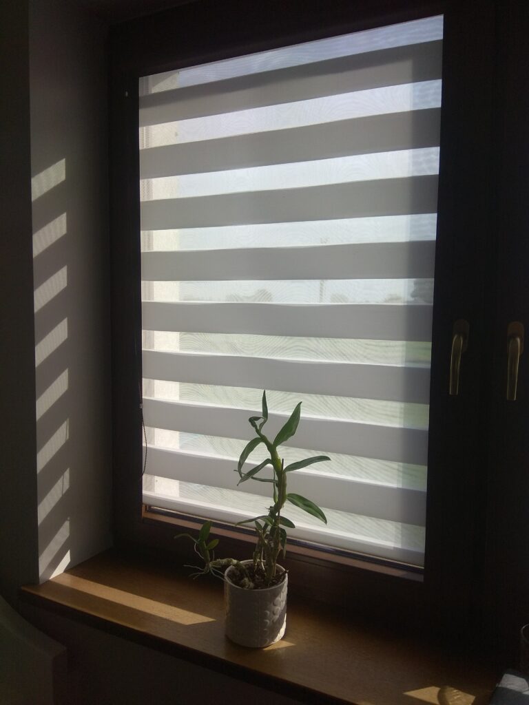 Rolety dzień/noc na wymiar, które mogą Państwo znaleźć w naszej ofercie, to połączenie walorów użytkowych i wysokiej estetyki. Dzięki specjalnemu systemowi w prosty sposób można wpuścić maksymalną ilość światła i rozjaśnić pomieszczenie. Umożliwiają również ustawienie umiarkowanego oświetlenia w pomieszczeniu lub całkowite odcięcie wnętrza od dopływu światła, tym samym gwarantując prywatność po zmierzchu. W ten sposób można regulować jednak nie tylko ilość przepuszczanego światła, ale również ciepła. Każdy egzemplarz stworzony na wymiar skutecznie zatrzymuje silne promienie słoneczne, które latem mogłyby znacząco podnosić temperaturę w salonie, kuchni, czy jadalni. Dzięki zastosowaniu prowadnic, materiał naszych rolet dzień/noc nie powiewa i nie uderza o szybę w przypadku przewiewu.